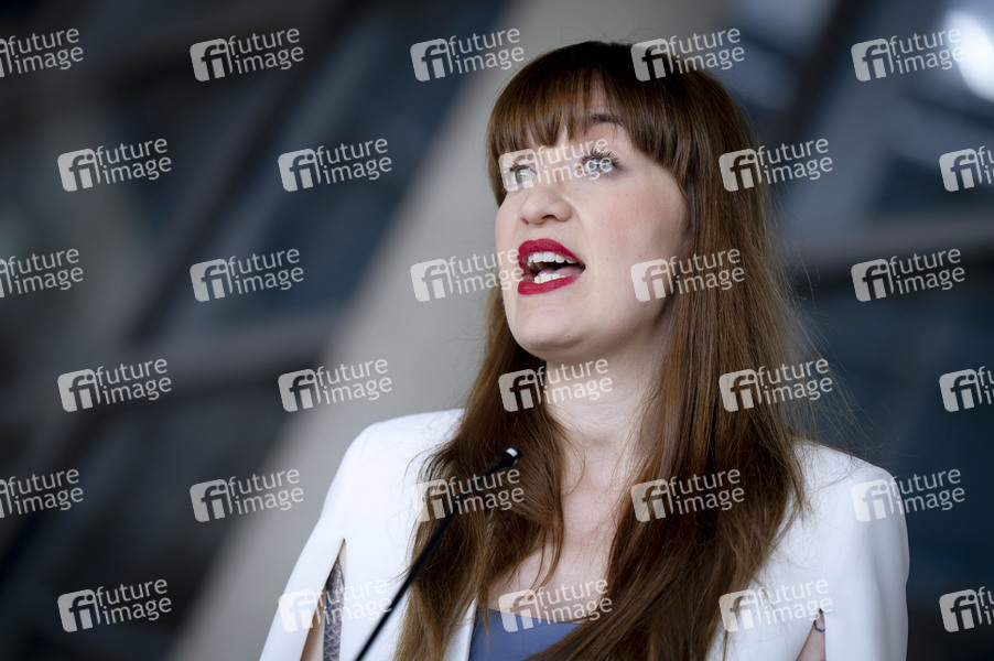 Heidi Reichinnek beim Pressestatement zur Fraktionssitzung der Die Linke-Bundestagsfraktion im Reichstagsgebäude. Berlin, 03.06.2025