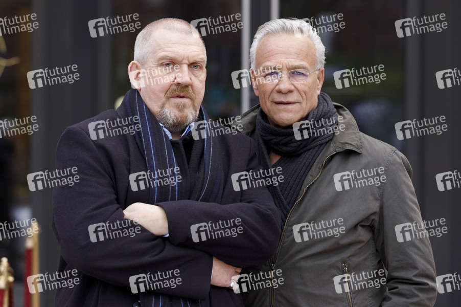 Dietmar Bär und Klaus J. Behrendt beim Fototermin am Set des 80. Tatorts aus Köln 'Tatort - Der Tod der Anderen' am Hotel Rheinpalais. Köln, 27.11.2019