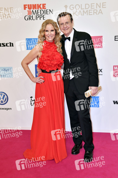 Katja Burkard mit Lebenspartner Hans Mahr bei der 54. Verleihung der Goldenen Kamera 2019 im Flughafen Tempelhof. Berlin, 30.03.2019