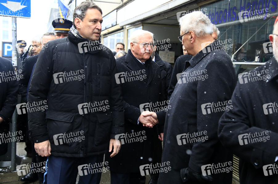 Frank-Walter Steinmeier und Joachim Herrmann beim stillen Gedenken am Ort des mutmaßlichen Anschlags vom 13. Februar. München, 14.02.2025