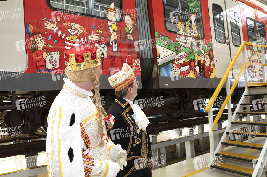 Ralf Schumacher als Jungfrau Griet und Christoph Kuckelkorn bestaunen die Karnevals-S-Bahn