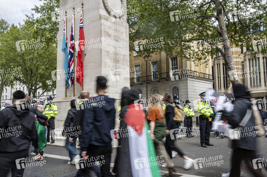 Tausende Menschen bei einem Protestmarsch, organisiert von pro-palästinensischen Organisationen. Viele Teilnehmer trugen Palästina-Fahnen und 'Free Palestine'-Banner. Ein Sprecher der Gruppe forderte die britische Regierung auf, ihre militärische, diplomatische und finanzielle Unterstützung für Israel umgehend einzustellen. London, 21.03.2021