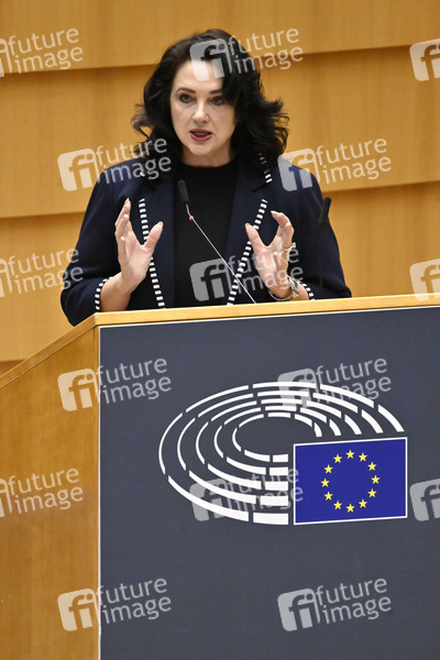 Helena Dalli bei einer Plenartagung zu Rassengerechtigkeit, Diskriminierungsverbot und Vorgehen gegen Rassismus in der EU im Plenarsaal des Europäischen Parlaments. Brüssel, 10.11.2022