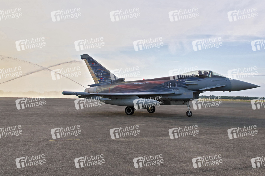 Ankunft von Eurofighter Typhoon der deutschen Luftwaffe auf dem Luftwaffenstützpunkt Hyakuri. Zum ersten Mal besuchen deutsche Eurofighter Japan. Der Besuch der Eurofighter in Japan folgt auf mehrwöchige internationale Manöver in Australien, bei denen die Deutschen auch mit japanischen Soldaten geübt haben. Omitama, 28.09.2022