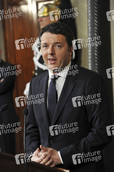 Pressekonferenz mit Matteo Renzi nach seiner Ernennung zum designierten Ministerpräsidenten von Italien im Quirinale-Palast. Rom, 17.02.2014
