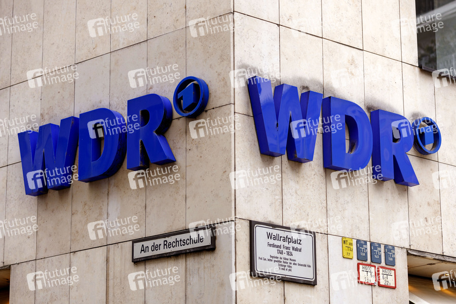 Am Funkhaus am Wallrafplatz hängt das Logo des WDR, der wegen der Corona-Krise bis auf weiteres sämtliche Events und Pressetermine ersatzlos gestrichen hat. Köln, 18.03.2020