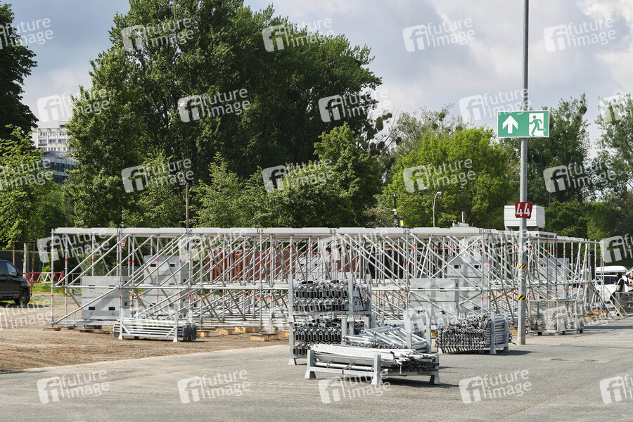 Aufbau für die Autokonzerte auf dem Schützenplatz. Die Besucher sollen unter Berücksichtigung klarer Hygiene-Vorschriften während der Corona-Krise die Konzerte aus dem Auto verfolgen. Hannover, 03.05.2020
