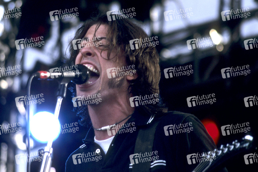 Dave Grohl von den Foo Fighters live auf dem Terremoto Festival 2000 auf der Trahrennbahn. Hamburg, 20.08.2000
