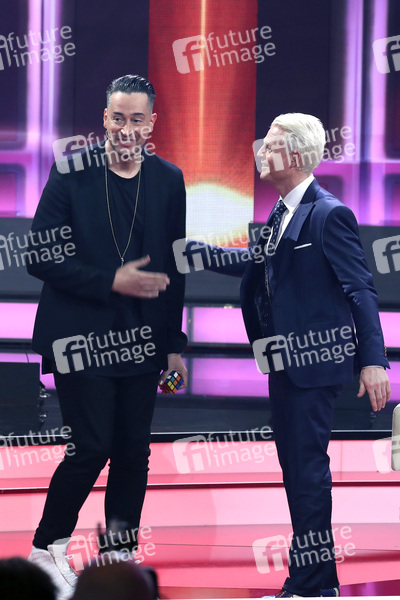 Farid und Guido Cantz bei der Aufzeichnung der ARD-Unterhaltungsshow 'Verstehen Sie Spass?' in den Bavaria Studios. Geiselgasteig bei München, 03.04.2019