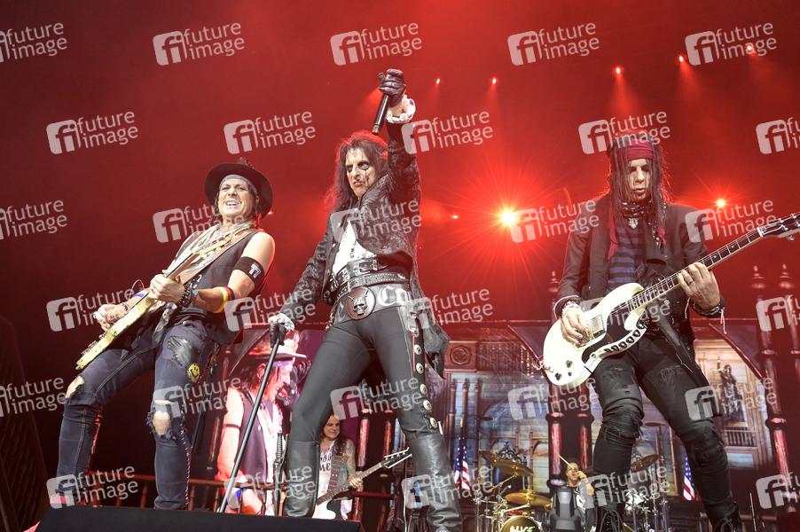Ryan Roxie, Alice Cooper und Tommy Henriksen live bei einem Konzert der 'Too Close for Comfort' Tour in der Max-Schmeling-Halle. Berlin, 09.10.2024
