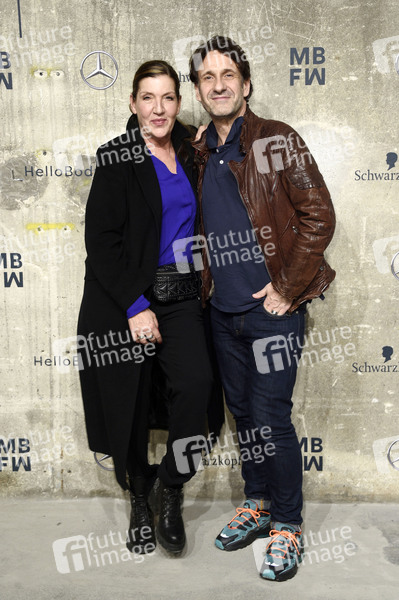 Katy Karrenbauer und Falk-Willy Wild bei der Cashmere Victim Runway Show im Rahmen der MBFW auf der Berlin Fashion Week Autumn/Winter 2020 im Kraftwerk Berlin. Berlin, 14.01.2020