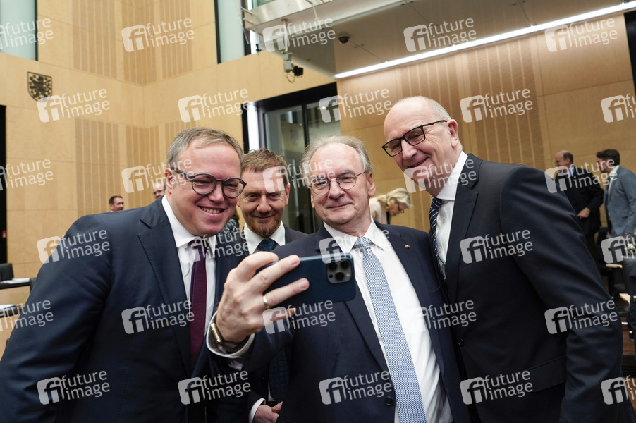 Mario Voigt, Michael Kretschmer, Reiner Haseloff und Dietmar Woidke in der 1050. Sitzung des Bundesrates im Plenarsaal des Preußischen Herrenhauses. Berlin, 20.12.2024