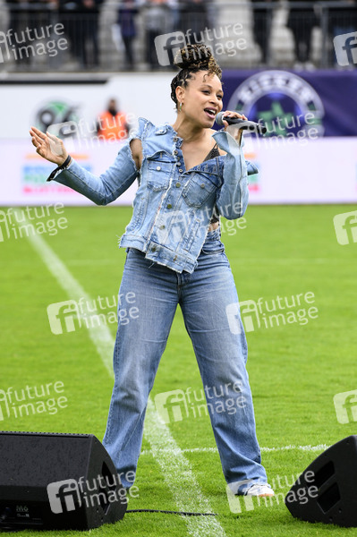 Sport, Match, Spiel, Fußball, Fussball, Teamsport, Mannschaftssport, Charity, Wohltätigkeitsveranstaltung, Benefizveranstaltung, Sängerin