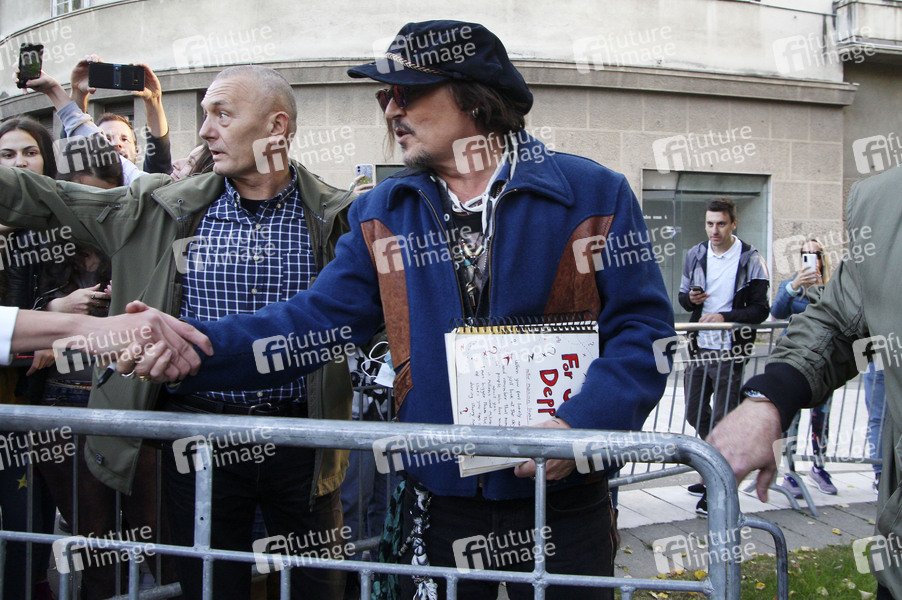 Johnny Depp bei der Ankunft zum Empfang bei Präsident Aleksandar Vucic anlässlich der ersten in Serbien produzierten Zeichentrickserie 'Puffins' im Gebäude des Generalsekretariats des Präsidenten der Republik Serbien. Belgrad, 19.10.2021