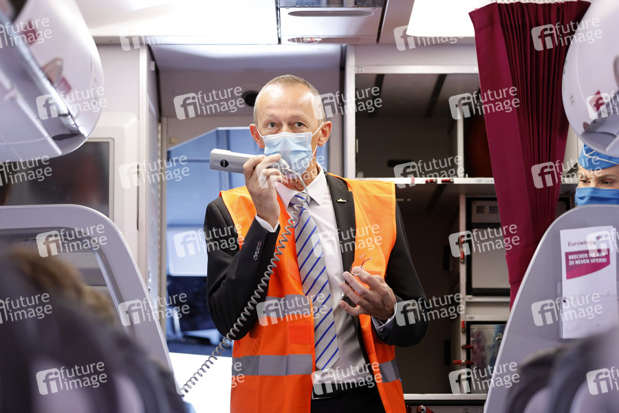 Johan Vanneste mit Mundschutz bei der Vorstellung des Sicherheitskonzepts am Flughafen Köln Bonn während der Coronakrise 'Sicher in Corona Zeiten'. Köln, 27.05.2020