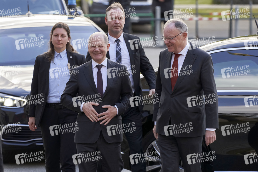 Olaf Scholz und Stephan Weil bei der Eröffnungszeremonie der Hannover Messe 2024 mit dem Partnerland Norwegen im HCC Kuppelsaal. Hannover, 21.04.2024