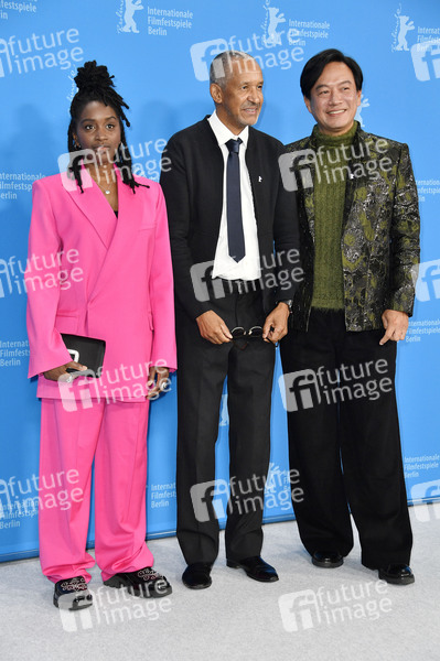 Nina Melo, Abderrahmane Sissako und Chang Han beim Photocall zum Kinofilm 'Black Tea' auf der Berlinale 2024 / 74. Internationale Filmfestspiele Berlin im Hotel Grand Hyatt. Berlin, 21.02.2024