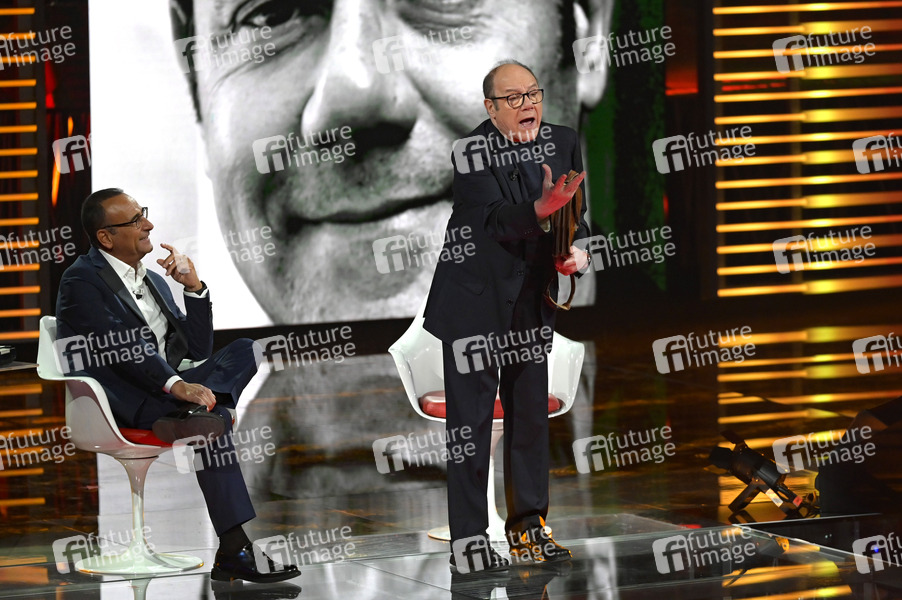 Carlo Conti und Carlo Verdone in der Rai TV-Show 'I migliori anni' in den Fabrizio Frizzi Studios. Rom, 06.04.2024