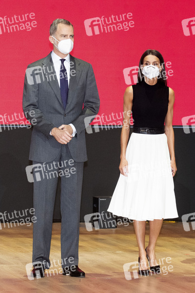 König Felipe von Spanien und Königin Letizia von Spanien bei der Präsentation des neuen IFEMA Logos im IFEMA Palacio Municipal. Madrid, 13.04.2021