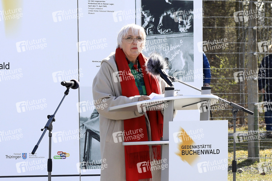 Claudia Roth bei der Kranzniederlegung zum 80. Jahrestag der Befreiung des Konzentrationslagers Buchenwald und Mittelbau-Dora. Weimar, 06.04.2025