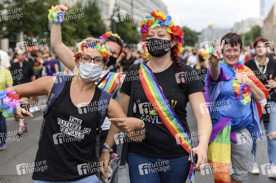 Lesben, Queers und Unterstützende beim jährlichen Dyke* March für mehr lesbische Sichtbarkeit am Tag des Christopher Street Days (CSD), der in diesem Jahr weitgehend online statt fand. Berlin, 25.07.2020
