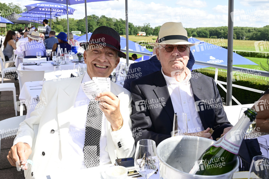 Jo Groebel und Franz Friedrich Prinz von Preußen beim Westminster 134. Großer Preis von Berlin Pferderennen auf der Rennbahn Hoppegarten. Berlin, 11.08.2024