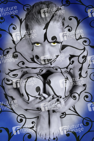 Bodypainting, Stoff, Erotik, Frau, nackt, drinnen, weiblich, Muster, erotic, woman, nude, indoor, female