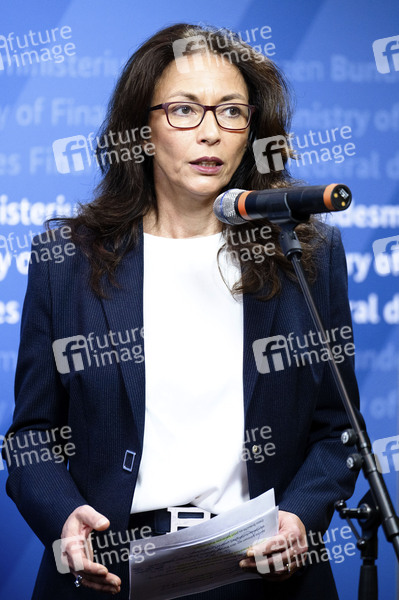 Yasmin Fahimi beim Stahlgespräch mit Betriebsräten und Gewerkschaften im Finanzministerium. Berlin, 01.10.2025