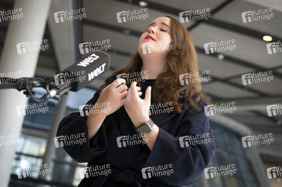 Ricarda Lang beim Pressestatement nach der Fraktionssitzung der Bündnis 90/Die Grünen-Bundestagsfraktion im Reichstagsgebäude. Berlin, 26.02.2025