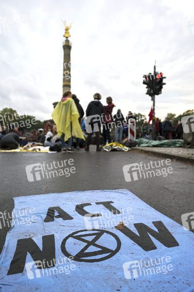 Aktivisten der Klimabewegung 'Extinction Rebellion' blockieren den Großen Stern an der Siegessäule. Berlin, 08.10.2019