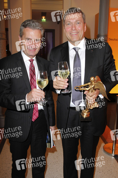 Guenther Hermann Oettinger und Guenter Butschek bei der Publishers Night des VDZ in der Hauptstadtrepräsentanz der Deutschen Telekom. Berlin, 22.10.2013