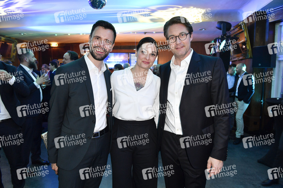 Felix Falk, Lina van de Mars und Andreas Scheuer bei der Verleihung des Deutschen Computerspielpreises 2019 im Admiralspalast. Berlin, 09.04.2019