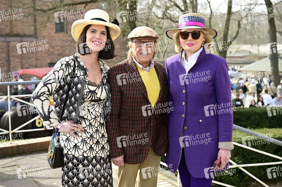 Sarah Würgler, Claus Theo Gärtner und Tini Gräfin von Rothkirch bei der Großen Saisoneröffnung 2024 auf der Rennbahn Hoppegarten. Berlin, 31.03.2024