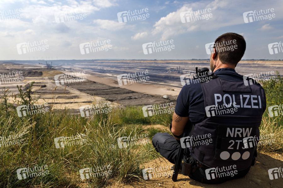 Erderwärmung, Klimagase, Kohlegegner, Klimaaktivisten, Klima-Notstand, Klimanotstand, Klimakrise, Klima-Krise, Energiewende, CO2, Treibhausgase, Klimaschutz, Schulstreiks für das Klima, Klima-Demonstration, Klima-Demo, Klimademo, Fridays for Future, Ende Gelände, Demonstration, Demonstranten, Demo, Kundgebung, Kohlekraft, RWE, Protest, Aktion, Banner, Parolen, Politik, Klimaschutz, Klimakrise, Klimawandel, CO2-Ausstoß, CO2-Steuer, Kohleausstieg, Fossile Brennstoffe, Klimapolitik, Hochneukirch, Keyenberg, Jüchen, Erkelenz, Grevenbroich, Tagebau, Garzweiler II, Braunkohlerevier, Climate Change, Jugendbewegung, Aktivismus, Climate Justice, Polizeikette, Polizei, Demonstrationszug, Braunkohlegegner, Grubenrand, Aktivisten, Goldener Finger, Polizei, Polizeikräfte, Aktionsbündnis, Neurath, Kohle, Kohleversorgung, Braunkohle, Steinkohle, Symbolbild, Symbolfoto