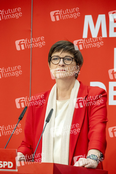 Saskia Esken bei einer Pressekonferenz der SPD zu den Bundestagswahlen im Atrium des Willy-Brandt-Hauses. Berlin,24.02.2025