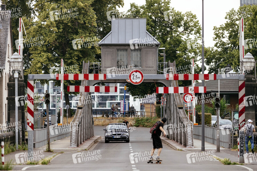 Drehbrücke, Deutz, Sightseeing, Attraktion, Historische Drehbrücke, Deutzer Hafen, Alte Drehbrücke, Kölner Brücke, alte Hafenanlagen, Tourismus, Skater, Skateboard, skaten
