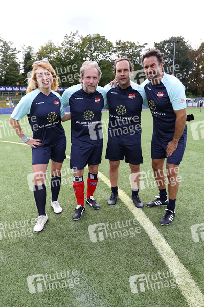 Esther Roling, Bjarne Mädel, Axel Bosse und Stephan Luca beim Benefiz-Fußballspiel 'Kicken mit Herz' 2023 zu Gunsten des Herzzentrums des UKE im Stadiun Hoheluft. Hamburg, 03.09.2023
