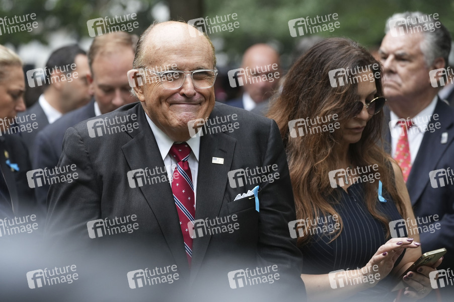 Rudy Giuliani bei der Gedenkfeier für die Opfer der Terroranschläge vor 21 Jahren am 9/11 Memorial. Mit Schweigeminuten und der Verlesung der Namen der fast 3000 Todesopfer haben die USA am Sonntag an die Terroranschläge vom 11. September 2001 erinnert. Am früheren Standort des World Trade Centers in New York verlasen Angehörige wie jedes Jahr am 11. September die Namen aller Anschlagsopfer. New York, 11.09.2022