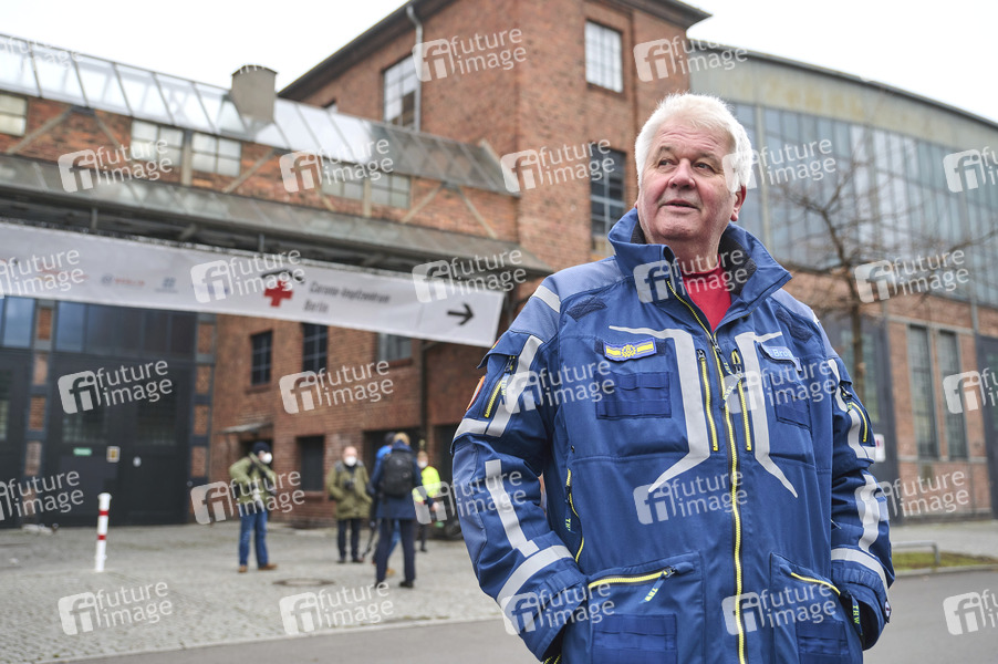 Albrecht Brömme (Impfzentren-Koordinator) bei der Inbetriebnahme des Corona-Impfzentrums in der Arena Berlin. Berlin, 27.12.2020