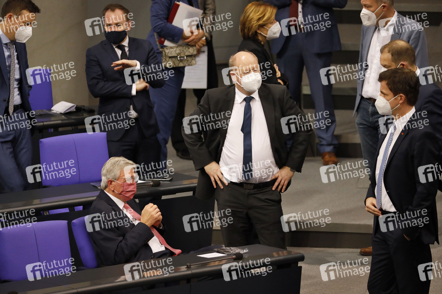 Volker Bouffier und Reinhold Hilbers bei der Rede von UN-Generalsekretär Guterres anlässlich 75 Jahre Vereinte Nationen im Plenum im Reichstagsgebäude. Berlin, 18.12.2020