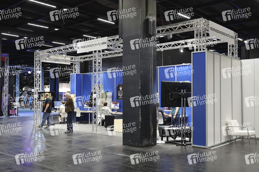 Der Verfassungschutz NRW auf der Gamescom 2022 auf dem Gelände der Kölnmesse. Die Gamescom ist die weltweit größte Messe für Computer- und Videospiele, gemessen nach Ausstellungsfläche und Besucheranzahl. Zahlreiche Hersteller aus aller Welt präsentieren hier ihre neue Soft- und Hardware. Köln, 24.08.2022