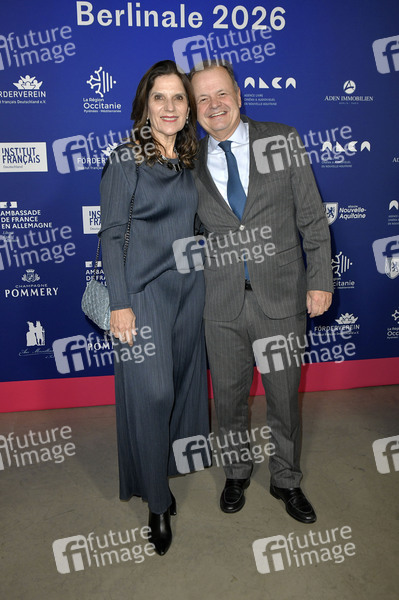 Rodrigo de Lima Baena Soares mit Ehefrau Luciana Baena Soares bei der Soiree francaise du cinema mit der Verleihung des französischen Kulturordens Ordre Officier des Arts et des Lettres im Rahmen der Berlinale 2026 / 76. Internationale Filmfestspiele Berlin in der Französischen Botschaft. Berlin, 16.02.2026