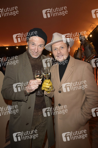 Bernhard Bettermann und Roman Knizka beim offiziellen Opening der Baltic Lights 2024 mit Fackellauf und Lagerfeuer an der Alex Strandbar. Heringsdorf, 01.03.2024