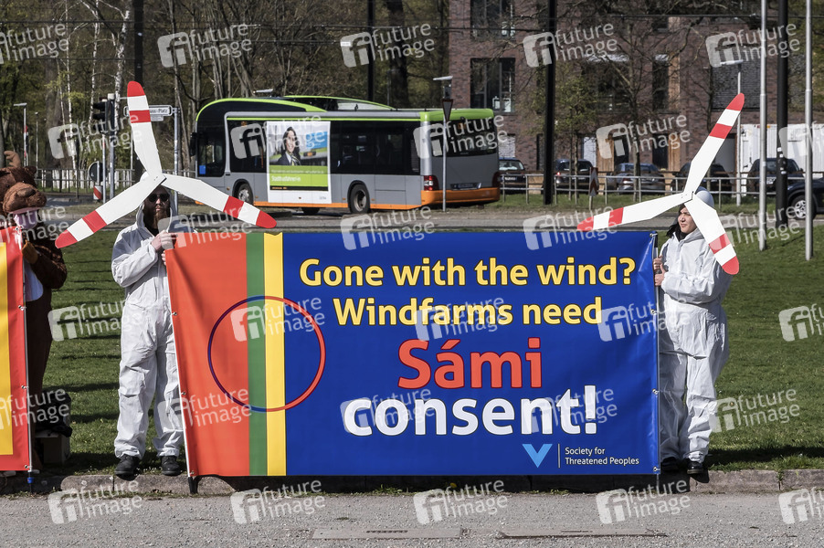 Demonstranten bei der Eröffnung der Hannover Messe 2019 im HCC. Hannover, 31.03.2019