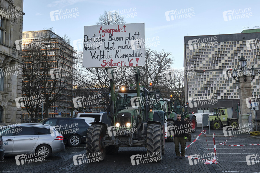 Treckerdemonstration 'Land schafft Verbindung' gegen die neue Düngeverordnung und strengere Vorgaben zum Arten- und Tierschutz von niedersächsischen Landwirten auf dem Trammplatz vor dem Rathaus. Hannover, 17.01.2020