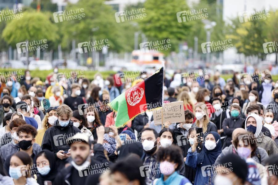 Demonstranten bei der Kundgebung unter dem Motto 'Luftbrücke jetzt! Schafft sichere Fluchtwege aus Afghanistan!' auf dem Platz der Republik. Berlin, 17.08.2021