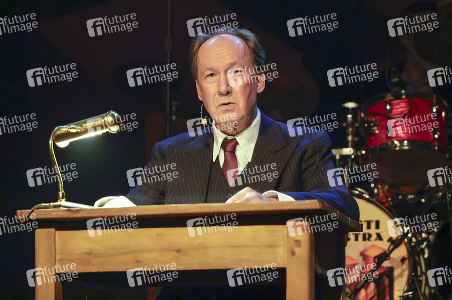 Ulrich Noethen und das Moka Efti Orchestra bei der musikalischen Lesung 'Der nasse Fisch' im Theater am Tanzbrunnen. Köln, 12.03.2025