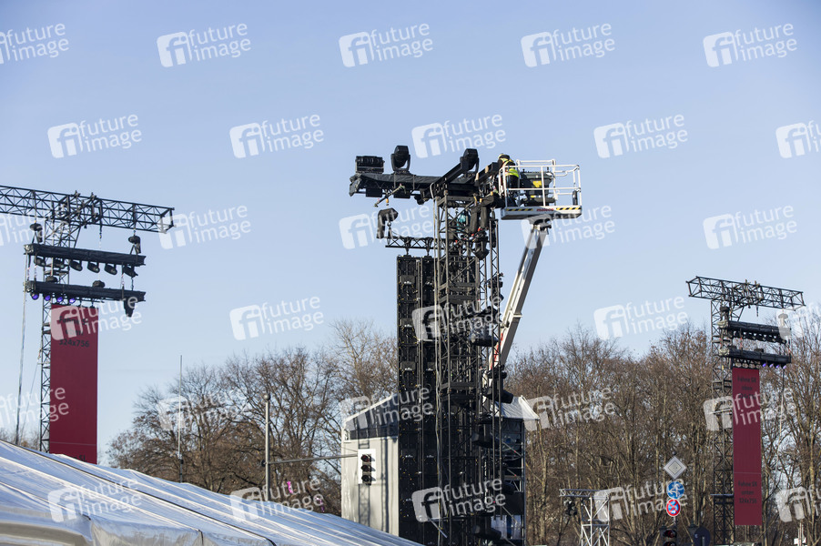 Vorbereitungen und Absperrungen zur jährlichen Silvesterfeier am Brandenburger Tor. Aufgrund der COVID-19-Abstandsregeln findet die Feier dieses Jahr nur als Fernsehübertragung ohne Livepublikum statt. Berlin, 30.12.2020