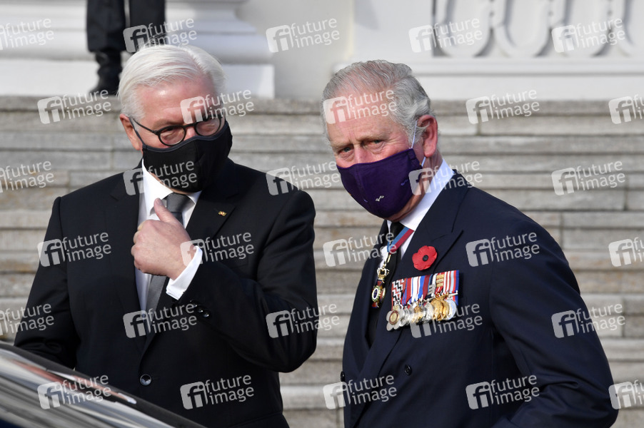 Frank-Walter Steinmeier und Prinz Charles beim Fototermin zum Empfang beim Bundespräsidenten im Schloss Bellevue, anlässlich des Besuchs der Gedenkfeier zum Volkstrauertag. Berlin, 15.11.2020