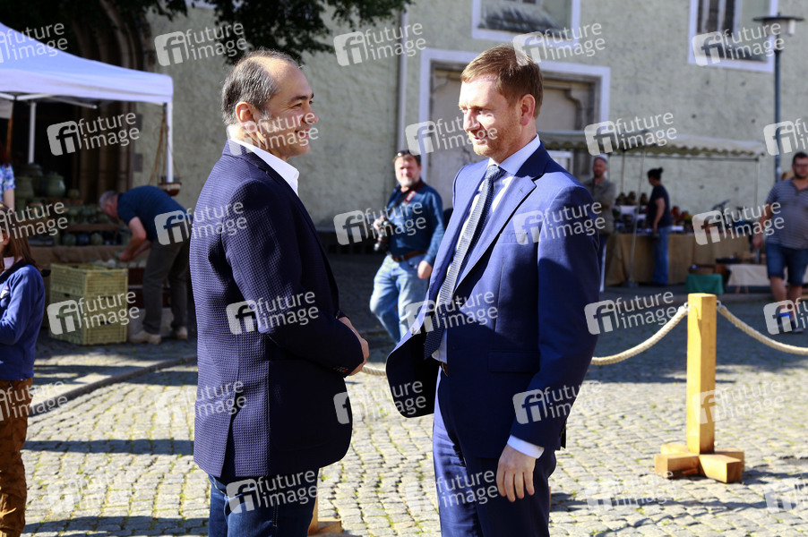 Oberbürgermeister Octavian Ursu und Ministerpräsident Michael Kretschmer bei der Eröffnung vom 22. Schlesischen Tippelmarkt. Görlitz, 18.07.2020